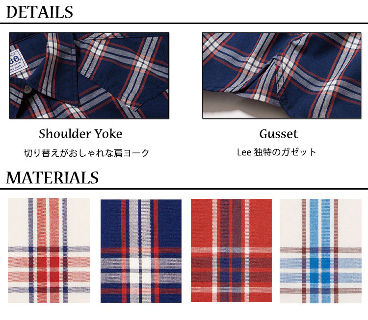 商品説明: Leeらしさが存分のオリジナルチェック柄シャツ。コンパクトなシルエットに、Leeらしいオリジナルチェック柄のシャツ。1枚でも羽織としても着用が可能で、コーディネートのアクセントになるアイテム。さらっとした肌触りで通年着用が可能です。