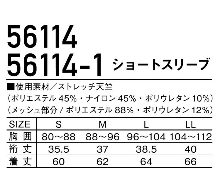 製品名: Jawin ジャウィンショートスリーブ インナー 56114 自重堂 春夏 作業服