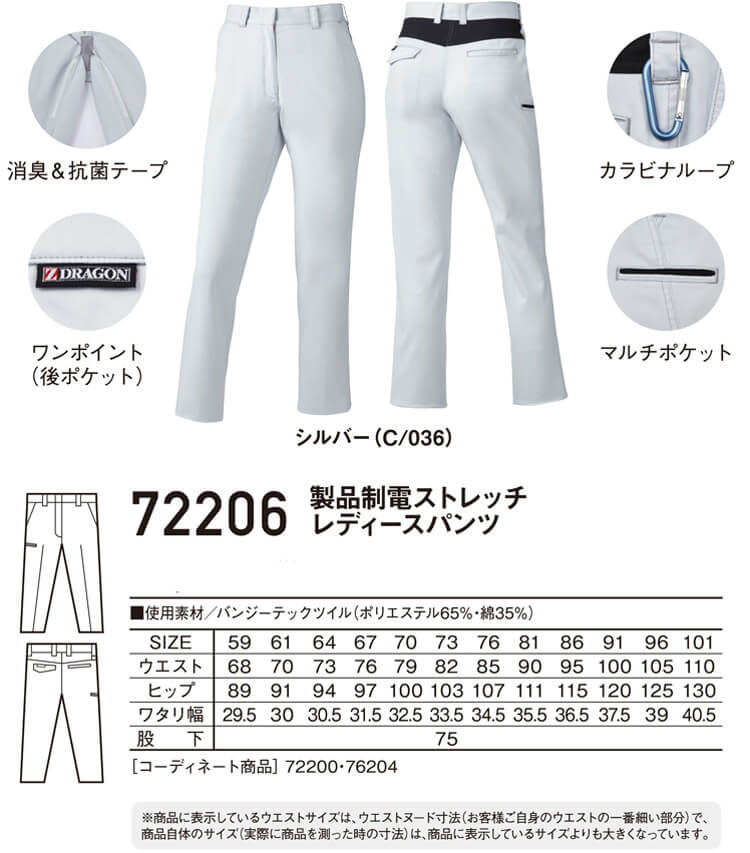 • 作業服 Z-DRAGON ジードラゴン 製品制電ストレッチレディースパンツ 72206 秋冬 自重堂