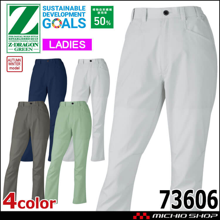 • ジードラゴン Z-DRAGON エコ製品制電ストレッチレディースパンツ 73606 作業着 SDGs 環境配慮型 秋冬 自重堂 2025年秋冬新作