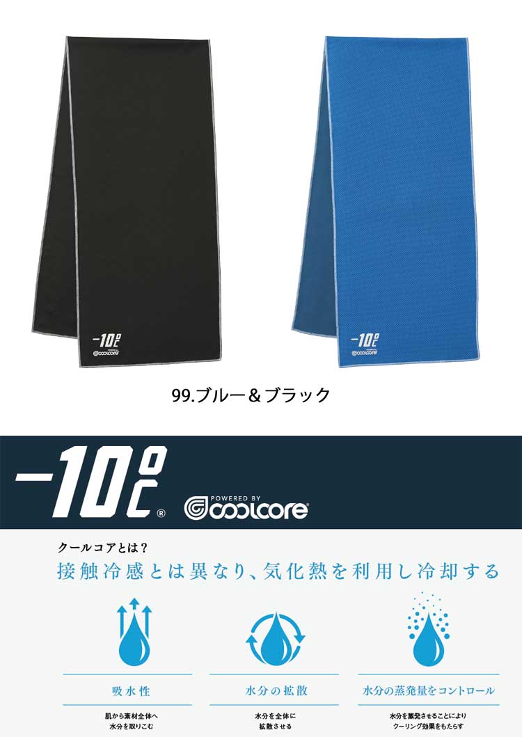 商品説明: 代表的なクーリング機能として接触冷感があるか接触冷感素材は熱伝導性が高いゆえに冷たく感じるのはファーストタッチの一瞬だけとなる。それに対し、クールコアは気化熱を利用し冷却する為水分がある限りクーリング効果が持続される。