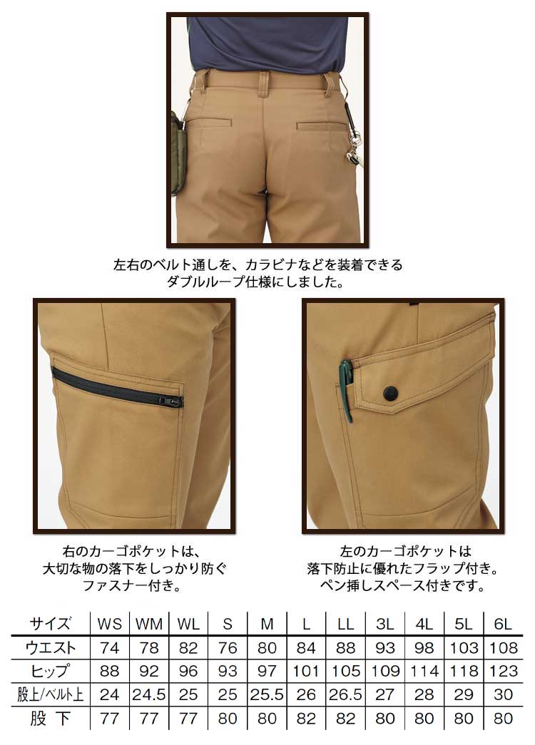 • 作業服 作業着 ROCKY ロッキー 通年 男女兼用 ノータックカーゴパンツ RP6915 ボンマックス