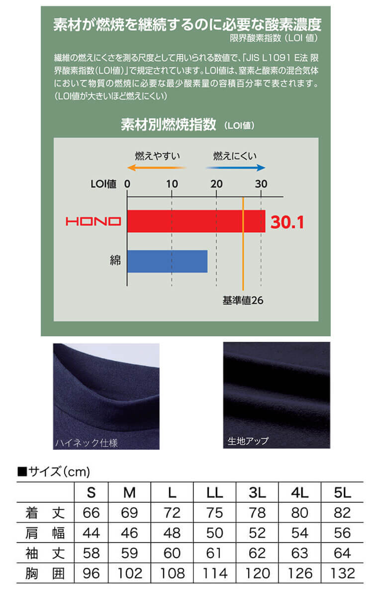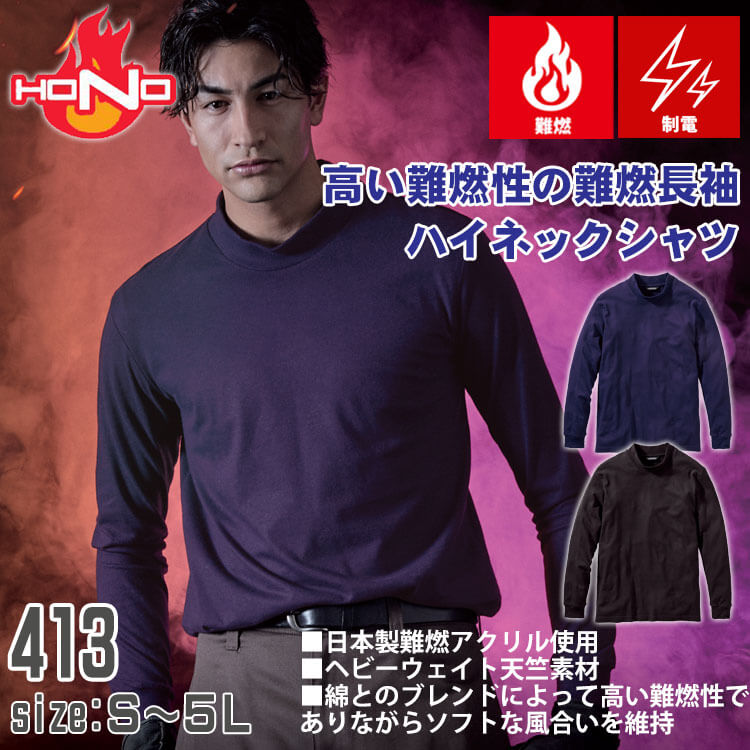 製品名: 難燃長袖ハイネックシャツ