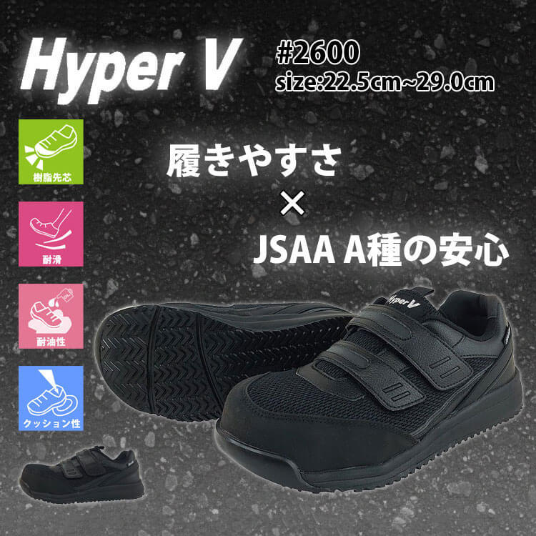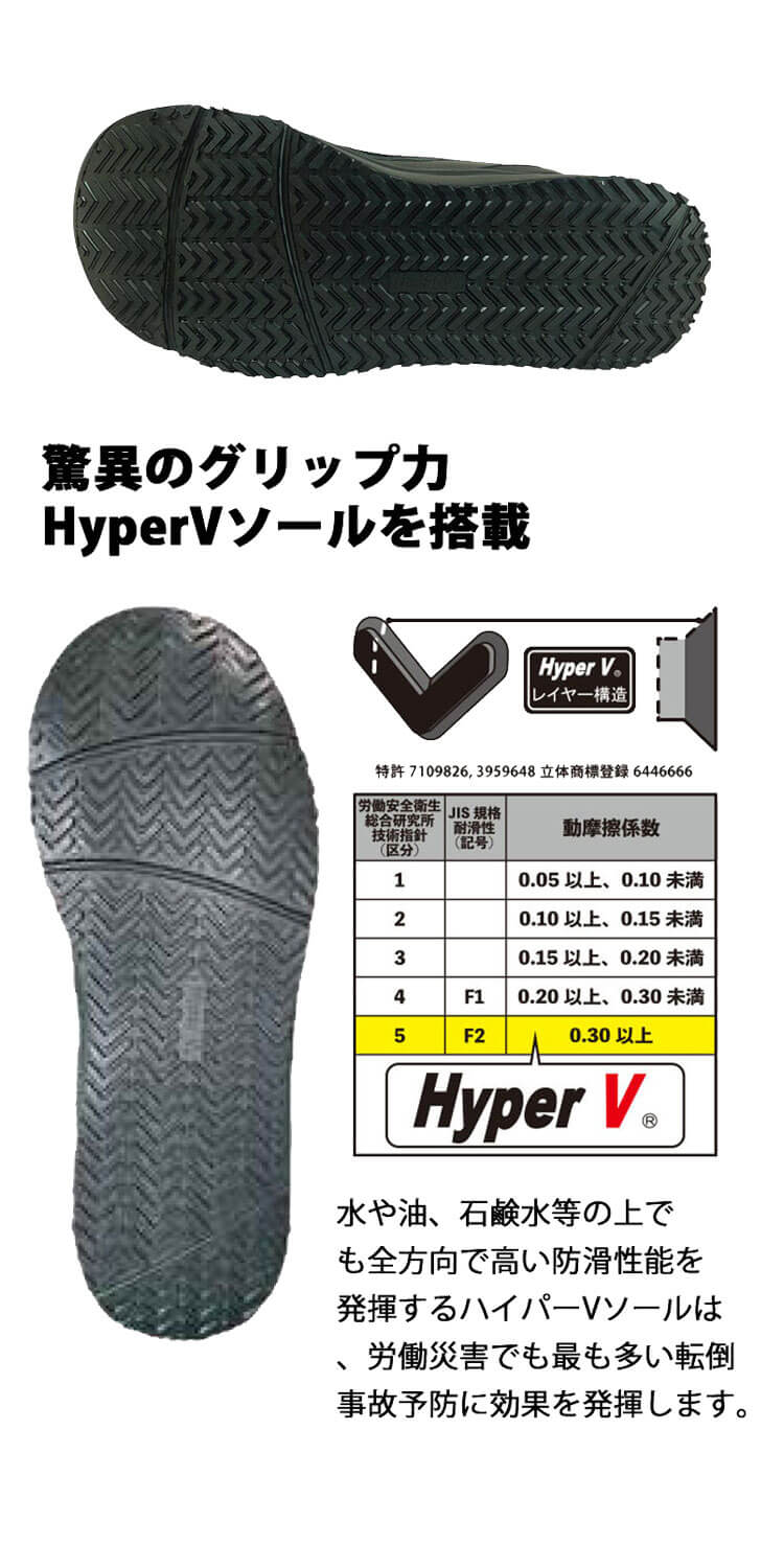 ・耐油・耐滑・クッション性に優れたHyperVソール搭載の合皮スニーカー