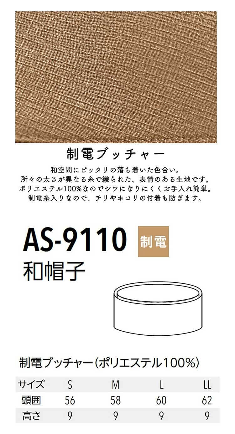 • 飲食サービス系ユニフォーム アルベ arbe チトセ chitose 兼用 和帽子 AS-9110通年