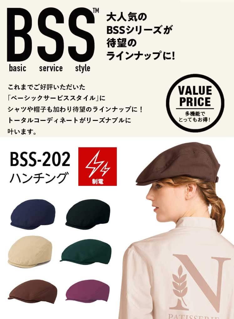• 飲食サービス系ユニフォーム アルベ arbe チトセ chitose 兼用 ハンチング BSS202 通年