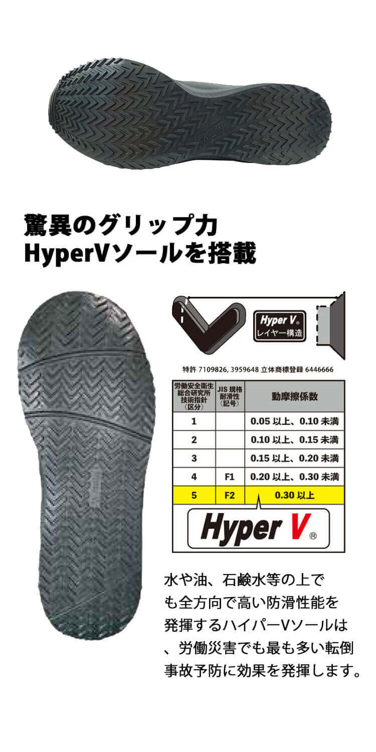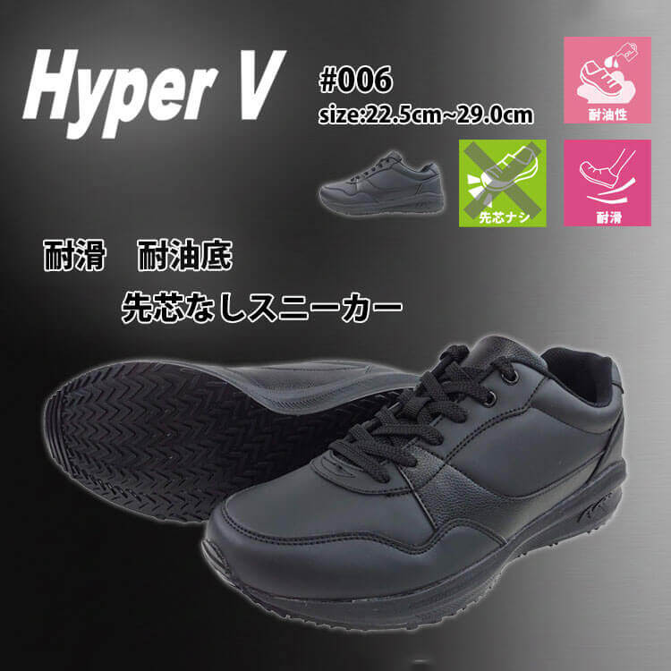 ・耐油・耐滑・クッション性に優れたHyperVソール搭載の合皮スニーカー