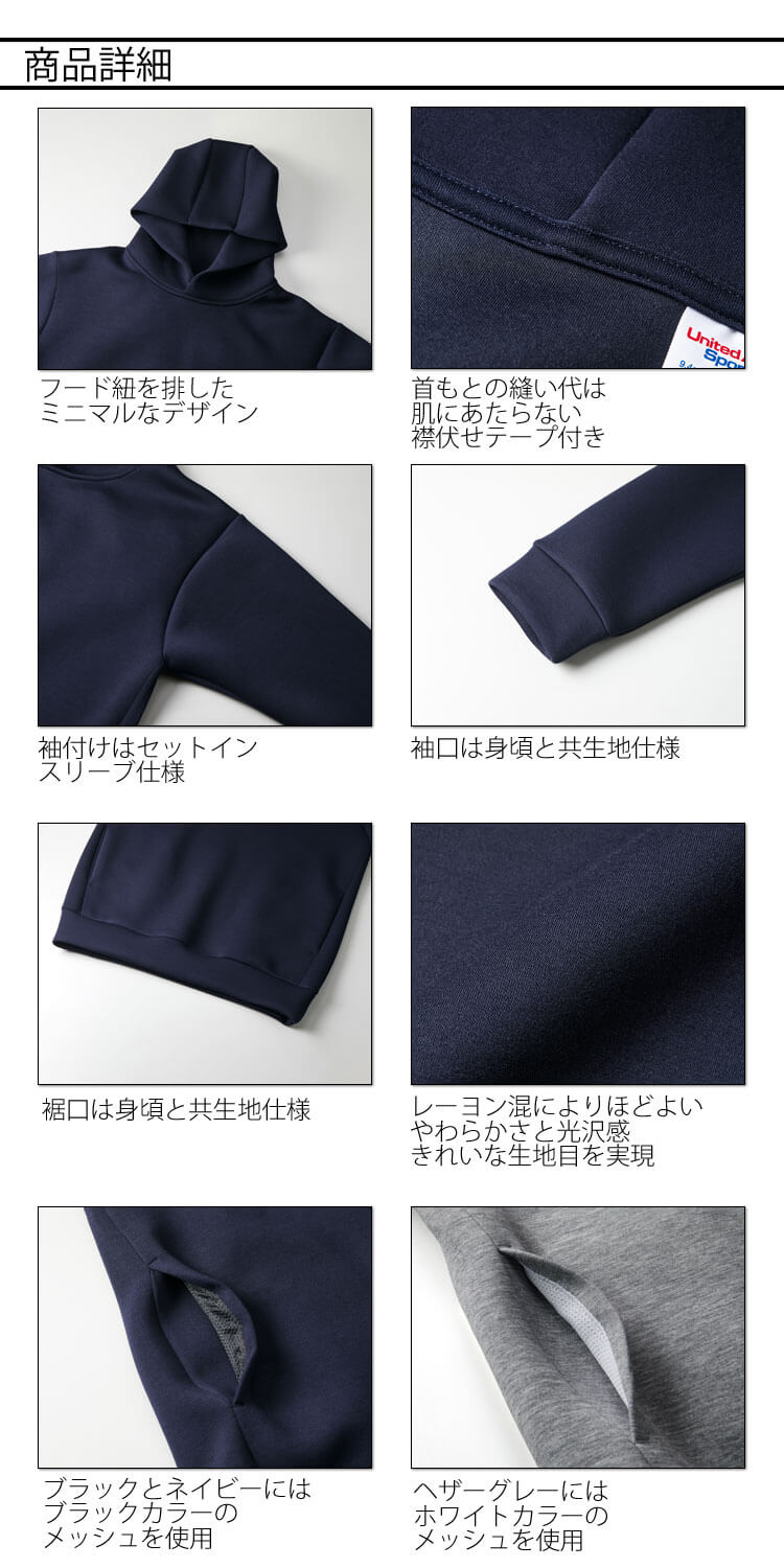 ・フード紐を排したミニマルなデザイン