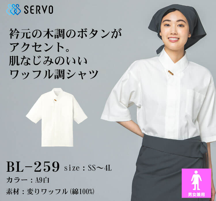 製品名: 飲食サービス系ユニフォーム SERVO サーヴォ シャツ BL-259 男女兼用 飲料店 レストラン カフェ キッチン 制服 ユニフォーム
