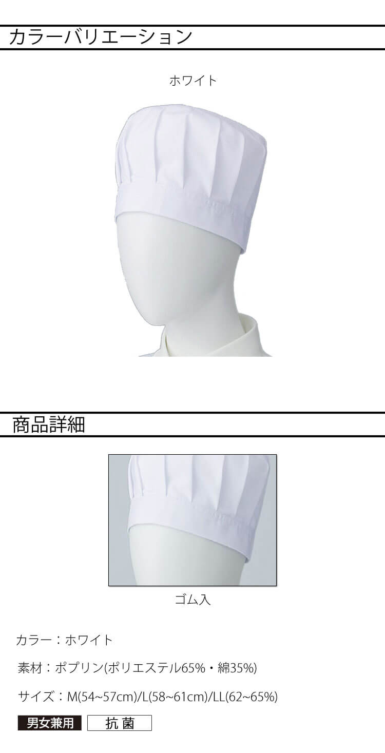 商品説明: サーヴォの児童給食向けのツバなし帽子です。繊維に付着した特定の細菌の繁殖を強力に抑え込む、抗菌性の高いフレッシュエリアが採用されています。洗濯を繰り返しても抗菌効果はほとんど落ちず、皮膚への刺激も少ないため、安心して着用いただけます。ゴム入りで頭にフィットしやすい構造です。男女兼用となっています。
