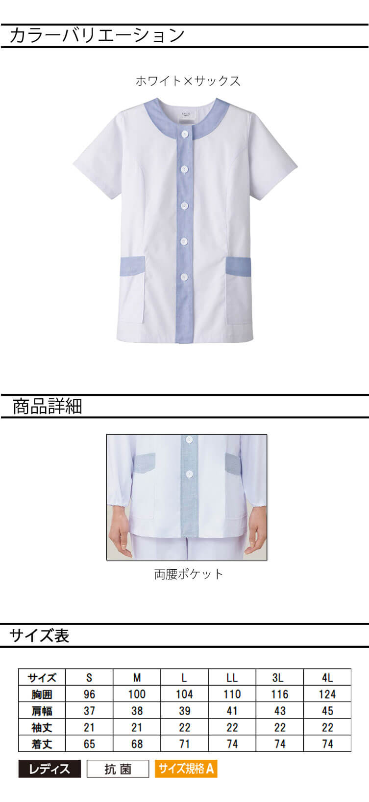製品名: 飲食サービス系ユニフォーム SERVO サーヴォ 女性用衿無し白衣(半袖) FA722 レディース 飲食店 レストラン カフェ キッチン 制服 ユニフォーム 白衣