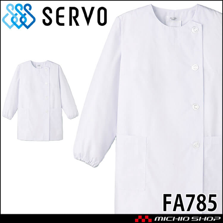 • 飲食サービス系ユニフォーム SERVO サーヴォ 女性用衿無し白衣(長袖) FA785 レディース 飲食店 レストラン カフェ キッチン 制服 ユニフォーム 白衣