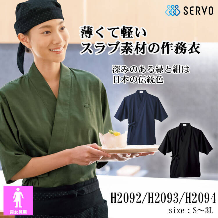 製品名: 飲食サービス系ユニフォーム SERVO サーヴォ 作務衣 H2092 H2093 H2094 男女兼用 飲料店 レストラン カフェ キッチン 制服 ユニフォーム