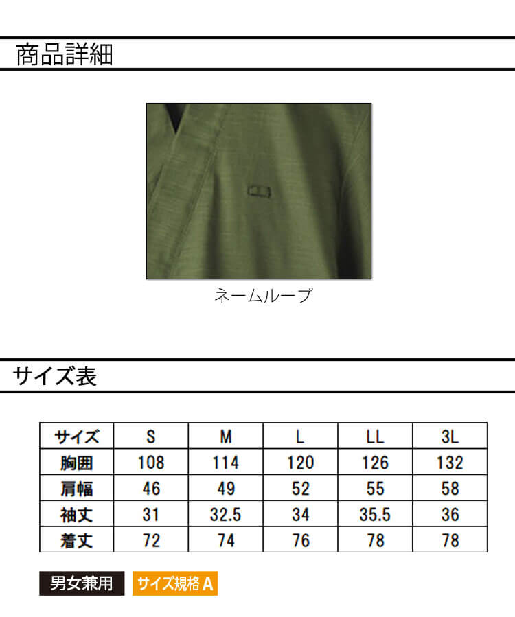 商品説明: サーヴォの作務衣です。薄くて軽いスラブ素材が特長です。内ポケットとネームループが付いています。日本の伝統色である深みのあるカラー展開です。男女兼用で着用者を問いません。