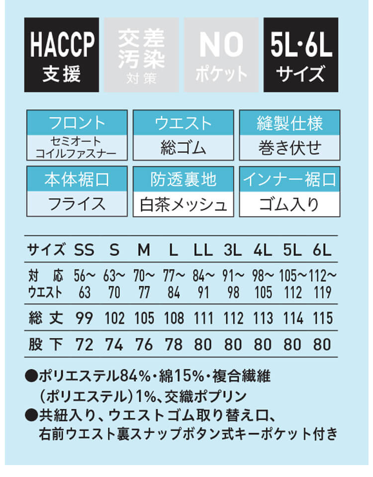 製品名: 食品工場白衣 ホッピングパンツ RR719 男女兼用 サーヴォ SERVO フードファクトリー 常温作業向け 制服 ユニフォーム