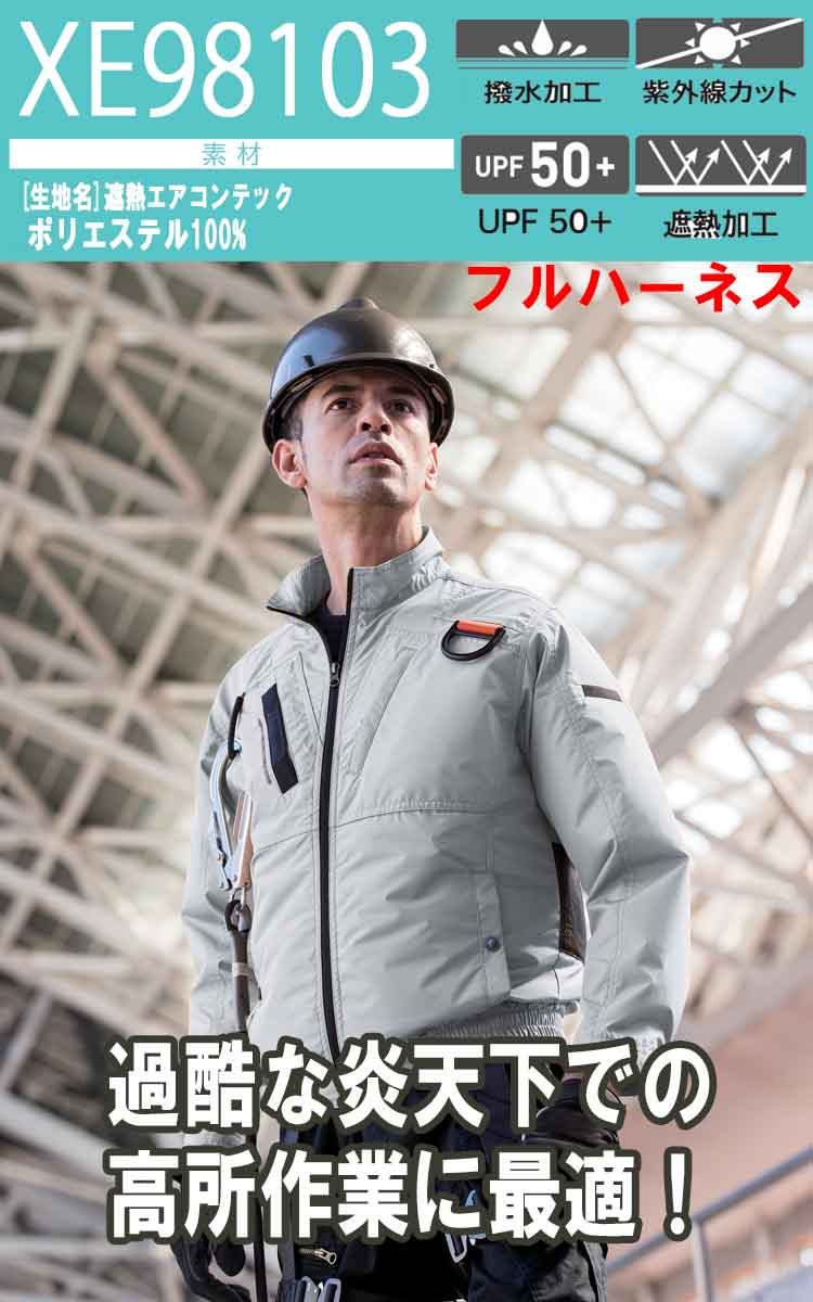 空調服 ジーベック XEBEC 遮熱フルハーネス長袖ブルゾン(ファンなし) サイドファン XE98103